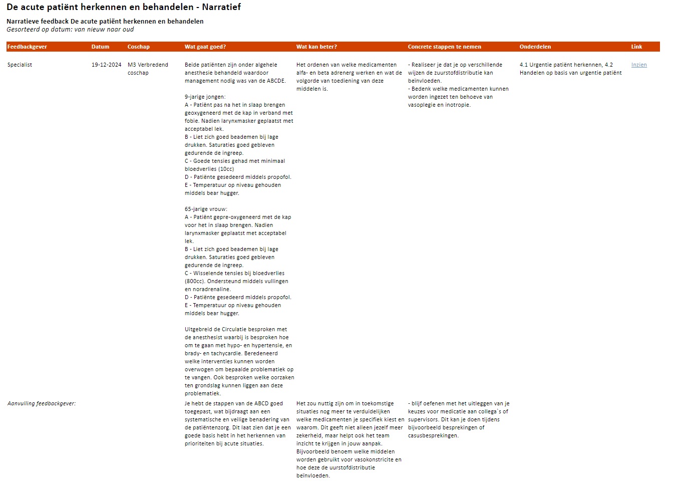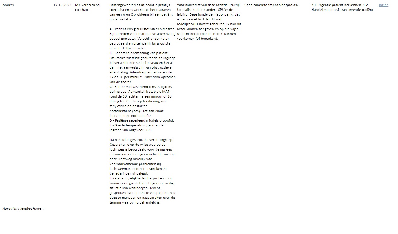 In de nieuwe master programma Epicurus worden geen cijfers ter afsluiting van een co-schap gegeven. Echter wordt gekeken naar de groei in leerdoelen aan de hand van dagelijkse feedback gesprekken. Het is de verantwoordelijkheid van de co-assistent om elke dag deze feedback te vragen. Verder is het aan te raden om aan verschillende personen deze feedback te vragen (AIOS, staf, anesthesiemedewerker). De feedback die de student krijgt is de basis voor de tussen- en eindbeoordeling